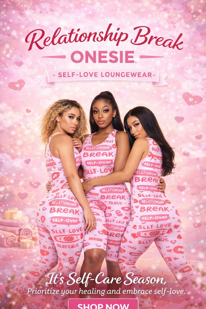 Because sometimes the best relationship is the one you have with yourself. The Relationship Break Onesie is your official uniform for healing, soft living, and choosing peace. Wrapped in playful pink tones with bold “Self-Love” affirmations and heart-healing details, this onesie was made for cozy nights in, girls’ weekends, and unapologetic self-care seasons.
